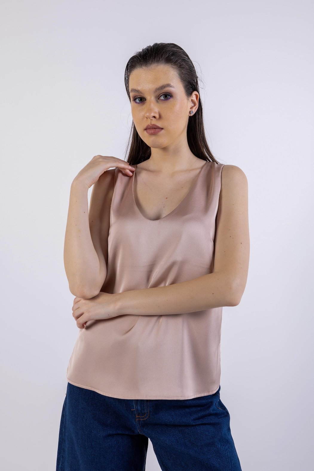 This classic sleeveless tank top features a flattering V-neck design, making it a versatile staple for any...