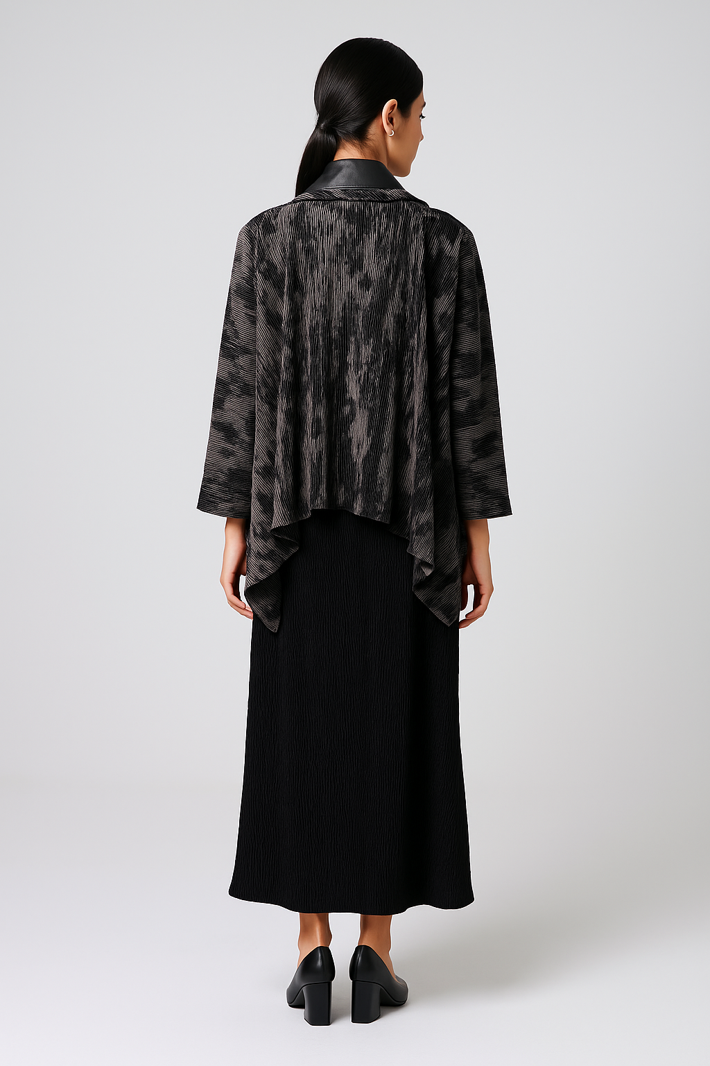 Pair it with a black sleeveless dress for a sleek, elevated evening look, or style it with wide-leg pants for a sophisticated daytime outfit.