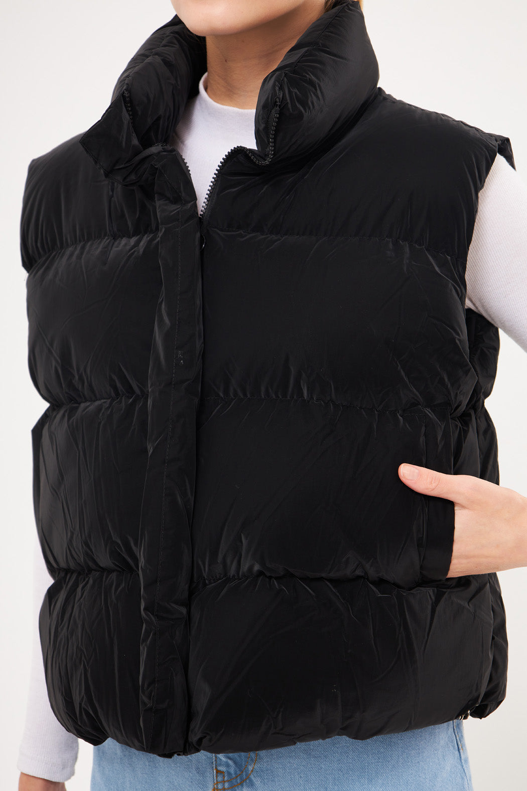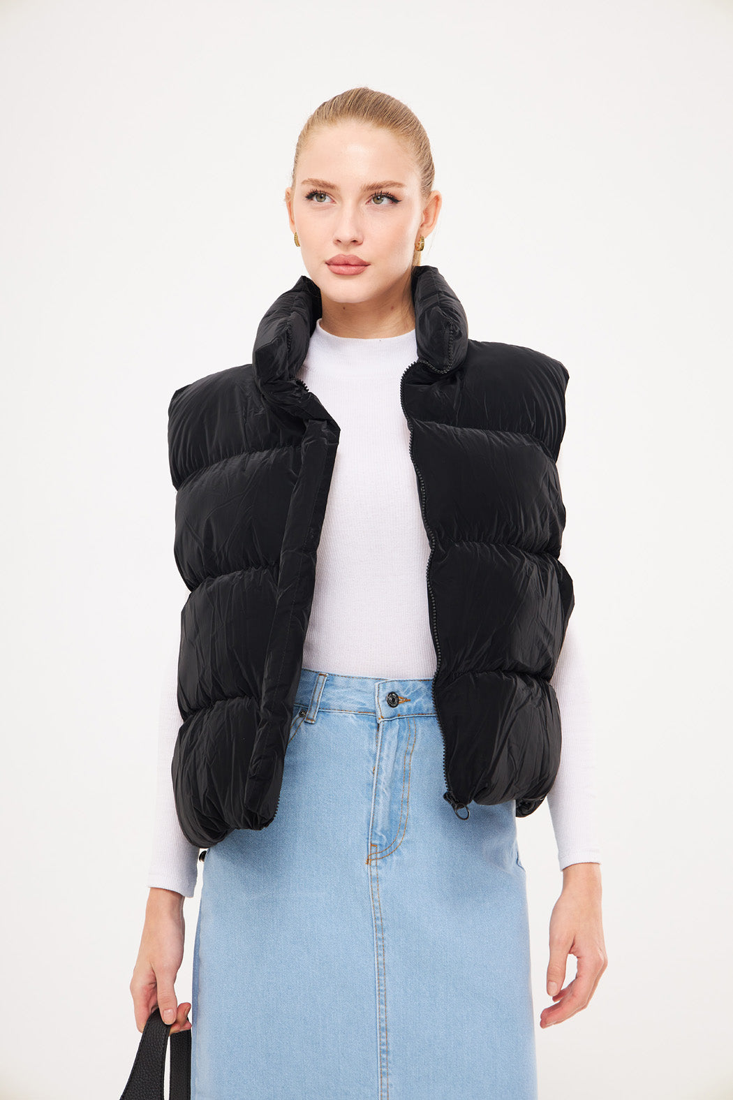 provides added freedom of movement, making it an ideal layering piece for transitional seasons. Whether paired with casual outfits or dressed up for a night out, this gilet brings a touch of glamour and comfort to any look.